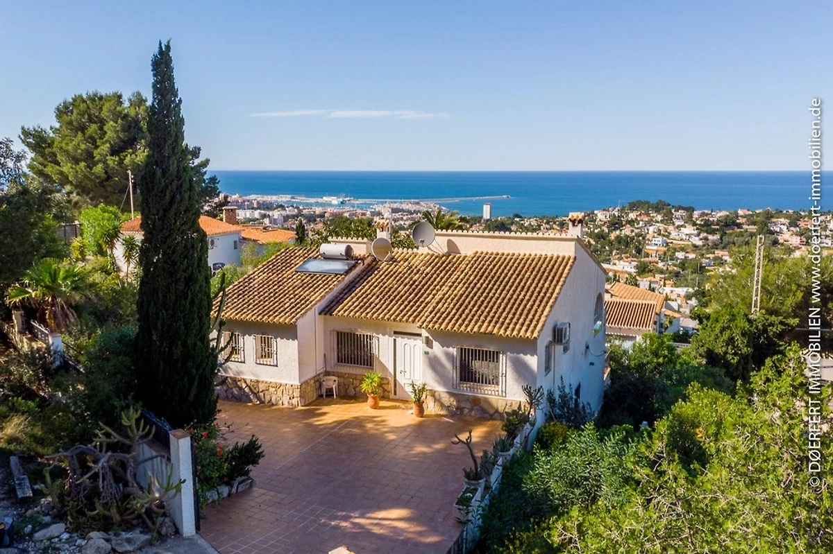 Herrliche Villa am Hang mit Panorama Meerblick, sehr ruhig gelegen, Hauptwohnbereich liegt auf Höhe der Terrassen vor und hinter dem Haus, Sie können Ihren Aufenthalt ganzjährig geniessen und erleben von der Poolterrasse und dem Wohnzimmer einen faszinierenden PanoramaMeerblick auf Denia und den Yachthafen, bei gutem Wetter sogar bis Ibiza. Es erwartet Sie eine großzügige Ausstattung.