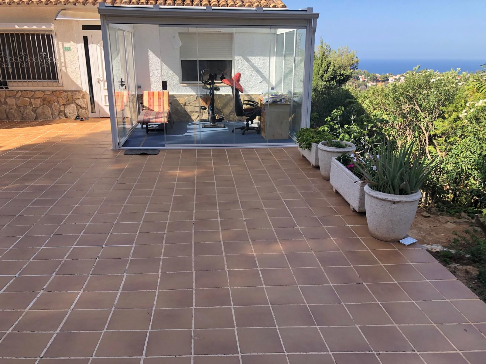 Die 30 qm grosse Terrasse wurde in 11.22 in einen Wintergarten umgebaut mit neuer Klimaanlage.